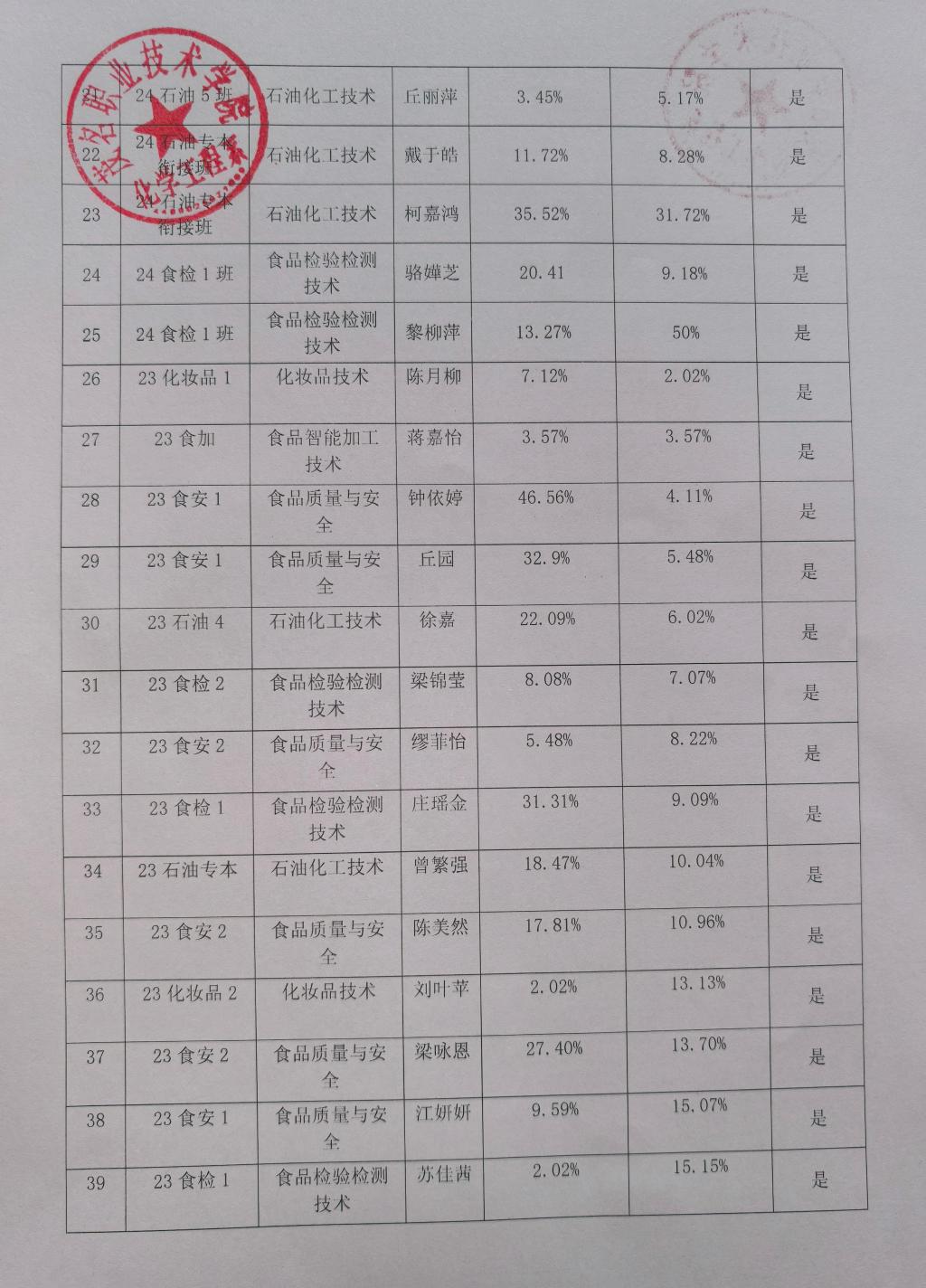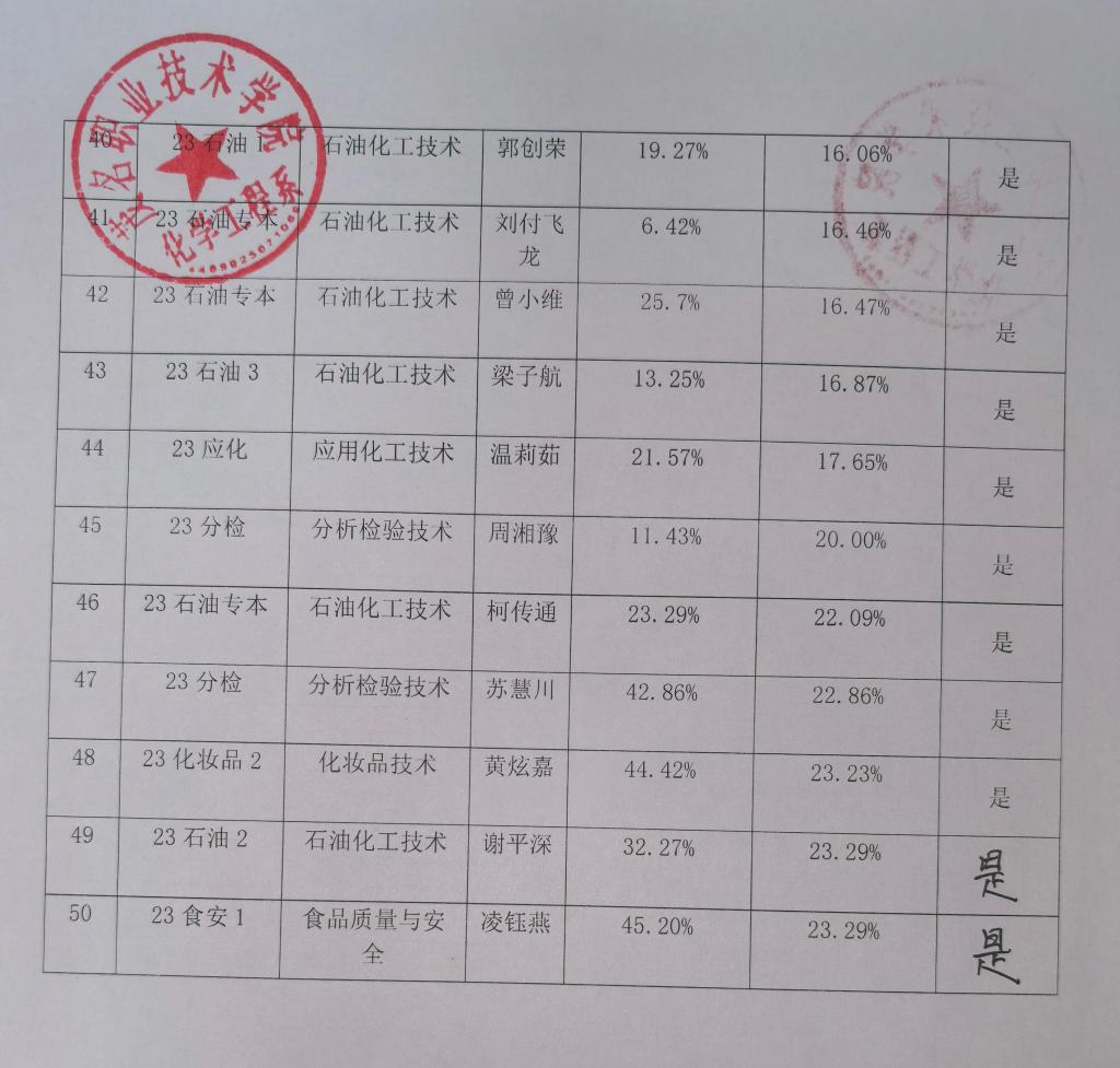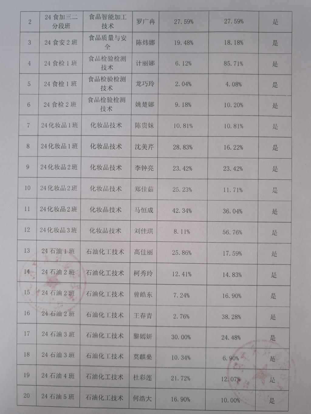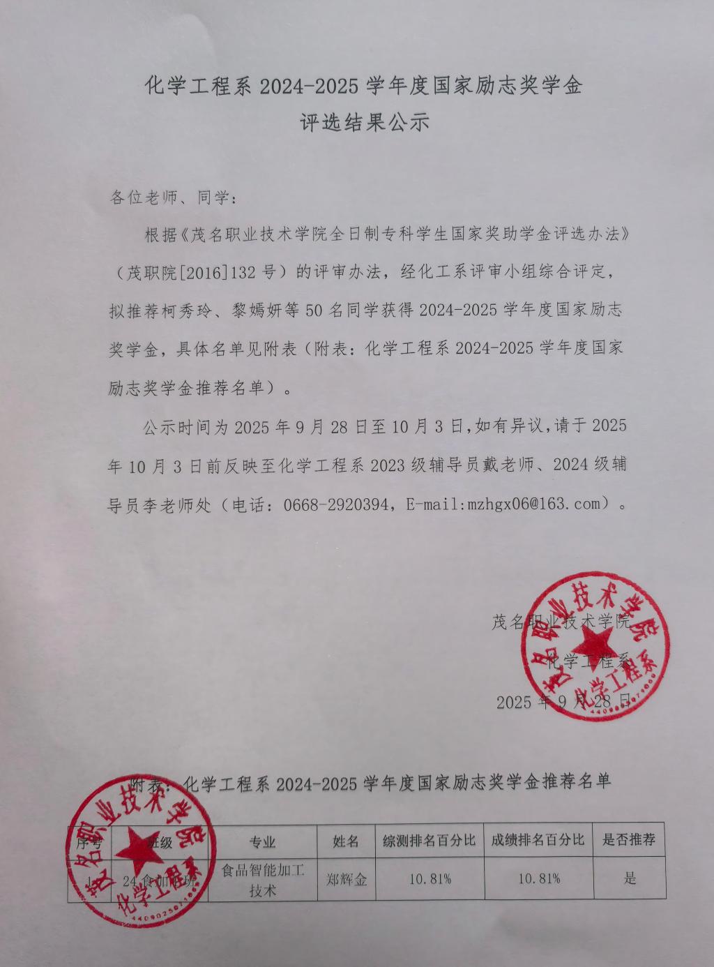 化学工程系2024-2025学年度国家励志奖学金评选结果公示