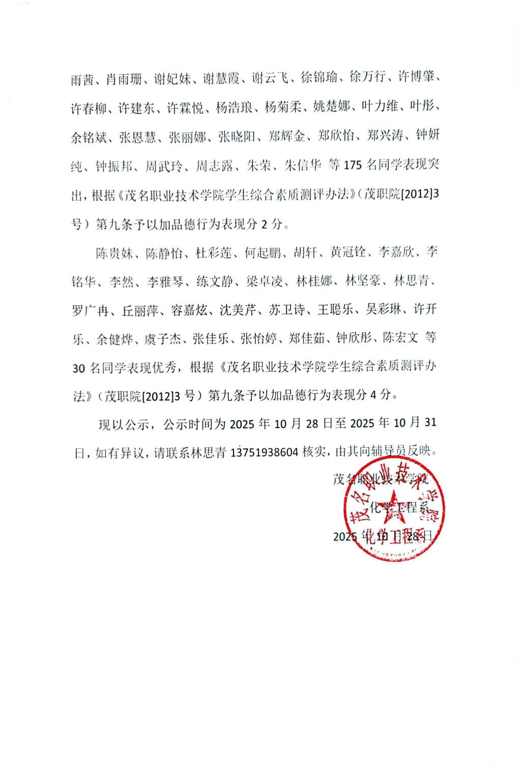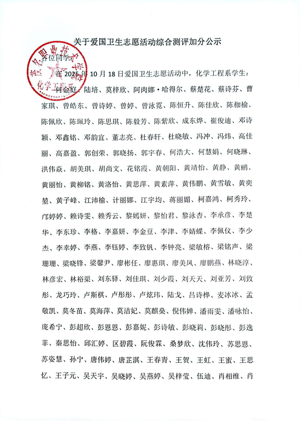 关于10月18日爱国卫生志愿活动综合测评加分公示
