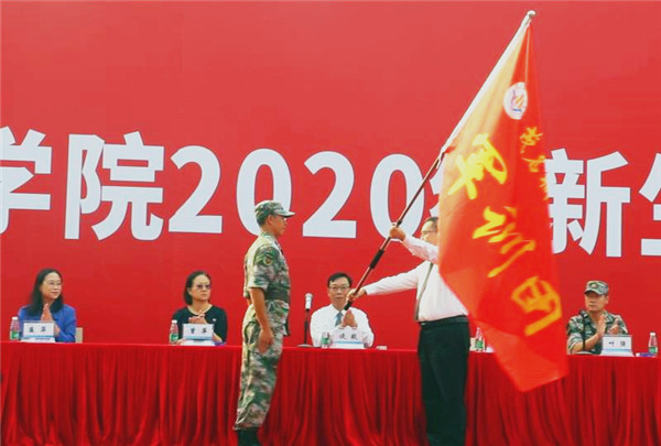 高鹏和张庆分别为南校区和北校区军训团授旗。