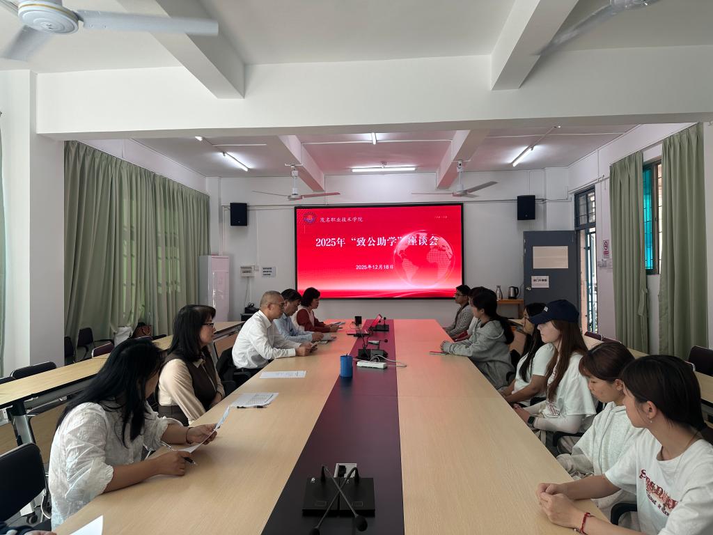 12月18日下午,致公党茂名市委会与茂名职业技术学院携手,于学校北校区1号教学楼202会议室举办2025年“致公助学”活动。致公党职院支部党员、受助学生共同参会,致公党茂名市委会主委、茂名市市场监督管理局局长黄钟发、学校宣传(统战)部部长梁晓应邀出席,致公党职院支部主委杨宜梅主持会议。