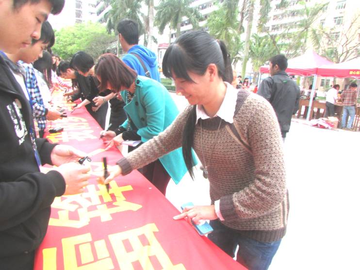 3月6日下午学院广场上彩旗飘飘、热闹非凡,我院志愿者欢聚一堂,参加“雷锋梦 我的梦”志愿服务统一行动月系列活动,学院团委干部、分团委书记、学生会、社联、广播站、学院服务中心、各系部团员青年、志愿者等700多人参加了此次活动。