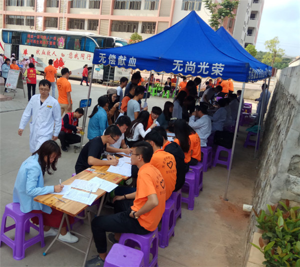 热血点滴,无限爱意。2017年3月30日,学院青协联合茂名市中心血站在水东湾新城校区开展“无偿献血,无尚光荣”无偿献血活动。志愿者们耐心为参加献血的同学填表、体检、验血、献血、领证等,整个活动现场井然有序。