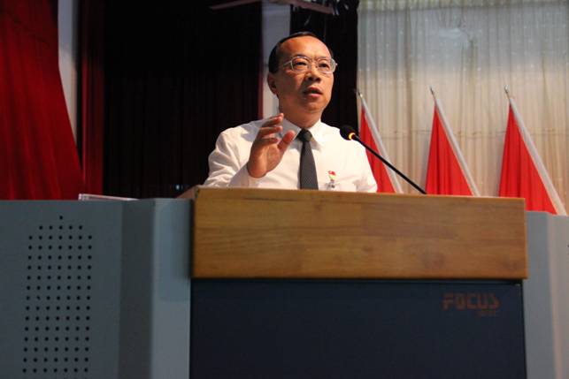 党委书记高鹏在会上作了讲话。他代表学院党委、行政班子向大会的圆满召开,向为本次会议作出努力和贡献的全体同志表示衷心的感谢,向大会取得的各项成果表示热烈的祝贺。高鹏指出,2017年是学院内涵建设出成果的一年,大会进一步凝聚了共识,在“十三五”期间,实现由“外延增量式”发展向“内涵提质式”发展转变、由“注重建设”向“建设与效益并重”转变、由“单一主体办学”向“多主体办学”转变,办学综合实力明显增强,努力建设特色鲜明、优势明显的粤东西北一流高职院校。他强调,学院的建设发展有三个经验永值得茂职院人引以为荣,一是学院的办学理念始终做到“服务地方经济发展,以学生为本、以教职工为本、可持续发展”;二是自力更生、艰苦奋斗建设新校区;三是以党建促发展成果显著,学院认真贯彻落实党委领导下的校长负责制,做到统揽全局、协调各方,定战略、管宏观、管重点,为学院发展提供坚强的组织保障、人才保障、纪律保障、宣传保障、安全稳定保障。全面加强了党的思想建设、组织建设、作风建设、制度建设和反腐倡廉建设,使学院形成了风清气正的环境。他就如何更好地实现大会预定的目标提了三点要求,一是坚持社会主义办学方向,培养德智体美全面发展的中国特色社会主义建设者和接班人,深入开展好社会主义核心价值观的培育,广大教职工要增强政治意识,大局意识、核心意识、看齐意识。二是围绕学院建成粤东西北一流高职院校“创先争优”,不断深化内涵建设,不断扩大学院的知名度与美誉度。广大教职工要深刻认识学院面临的机遇与挑战,认识自身的不足,要有危机感和紧迫感,认真履行岗位职责,不断提升水平与能力,发挥团队的力量,自觉提高服务于学院建设粤东西北一流高职院校的本领。三是进一步完善和规范党委领导下的校长负责制,合力营造风清气正干事创业的氛围,按学院党委提出的“三个有利于”,充分调动广大教职工的积极性,统一思想,振奋精神,凝心聚力,为地方经济社会发展做更大贡献。