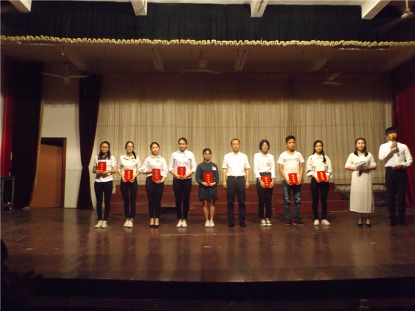 5月3日晚,由学校学生处主办,化学工程系承办的“弘扬社会正能量,创建我校优良学风”之读书月活动颁奖晚会在文明北校区小礼堂隆重举行。学院党委书记高鹏同志、各系(部)负责人、学生处全体人员、全体辅导员、系(部)学生代表共约500人观看了晚会。