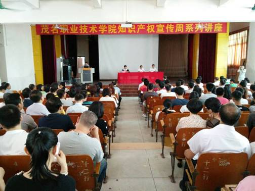 5月4日下午,茂名市政协副主席、茂名知识产权局局长崔锡明和广东省知识产权局政策法规处处长王留军率广州三环知识产权(集团)总裁温旭教授等10人,到我院文明北校区礼堂开展了内容丰富的知识产权系列讲座。学院副院长梁德萍,各系部教师及部分学生共200多人聆听了讲座。会议由学院副院长梁德萍主持。