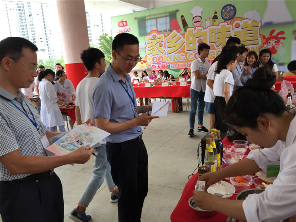 5月7日,“海天杯”第四届营养配餐与烹饪大赛总决赛在学院文明北校区一栋教学楼中厅举行,海天集团人力资源部经理余少雄,招聘专员严家安,茂名市中医院主任医师熊霸,茂名技师学院老师吴毓波等作为评委莅临了决赛现场。