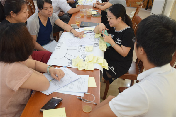 6月15日上午,随着学院内部质量诊断工作的不断推进,学院在文明北校区图书馆多功能会议室举行专业诊改研讨会。学院副院长梁德萍,教务处负责人,各系(部)主任、副主任、教研室主任,各系(部)具体负责日常诊改工作的人员及质量办(督导室)全体人员等参加了研讨会,研讨会由质量办主任梁辉良主持。此次研讨会以“世界咖啡屋”的形式展开,参会人员被随机分成6个小组,各小组推选出桌主,各小组讨论时限为15分钟,每个时段的讨论交流结束后桌主不变、组员依次轮换,各小组的桌主负责将本小组组员写在便签纸上的意见和建议进行汇总,并作总结发言。