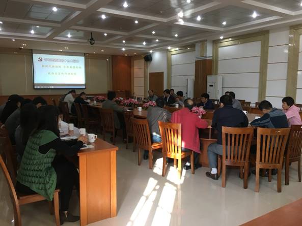 11月29日上午,在文明北校区图书馆会议室总务成教党支部以“新时代新征程夺取新胜利的政治宣言和行动纲领”为主题,举行学习贯彻党的十九大会议精神的学习会,总务处和成教部全体党员和群众参加了学习。