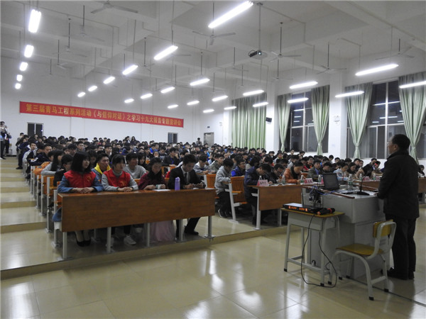 晚上,第三届青马工程系列活动《与信仰对话》之学习党的十九大报告专题宣讲会在水东湾新城校区1号教学楼201阶梯教室举行。学院党委书记高鹏以《用习近平新时代中国特色社会主义思想武装头脑,做新时代合格大学生》为题,全面生动解读党的十九大报告。学院团委办公室主任及各系部团干、各大青年组织、各系部团员青年代表300余人聆听了宣讲会。