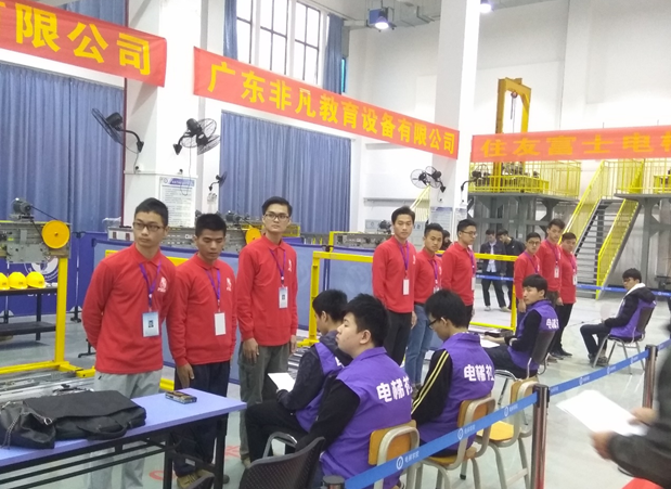 机电系领导十分重视这次高水平的大赛,不仅赛前亲手指导,还亲自带队参赛,现场加油鼓劲,让学生吃下了定心丸。在大赛前夜,还寻求到中山职院的临时帮助挑灯夜训,解决了关键点设备不足的特训问题,并在训练中结下了兄弟院校的情谊。同时,根据参赛学生的提议,我们将以这次大赛的丰富经验为契机,回来后组织专场学风建设座谈会,由参赛学生现身说法,激发同学们的学习热情,为机电系学风建设添加新动力。