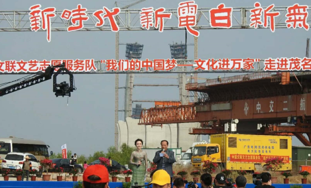 2017年12月30日下午,中国文联文艺志愿艺术家走进茂名电白重点项目工地开展“我们的中国梦----文化进万家”慰问演出。我院团委书记李锋成、团委办公室主任梁凤燕带领200余名团员青年前往茂名水东湾跨海大桥工地观看演出。