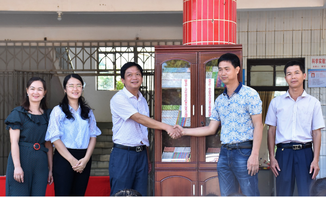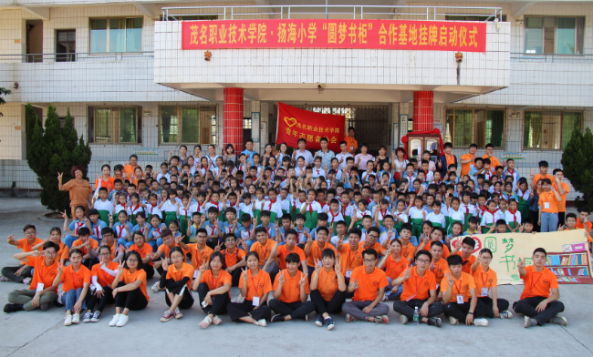 5月21日,茂名职业技术学院.扬海小学“圆梦书柜”合作基地挂牌启动仪式在扬海小学举行。茂名职业技术学院团委书记李锋成以及团委办公室全体成员、青年志愿者赴茂名市电白区南海街道扬海小学,与扬海小学校长崔创新以及扬海小学全体老师共同出席挂牌仪式。学院团委梁凤燕老师主持仪式。