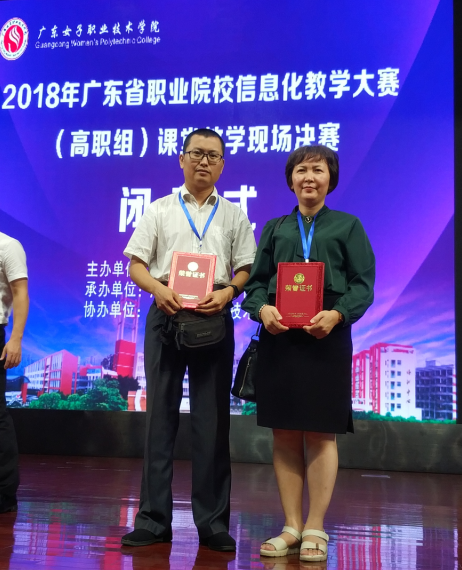 7月6-8日,2018年广东省职业院校信息化课堂教学大赛(高职组)现场决赛在广州女子职业技术学院举办。我校经济管理系教师江静、刘峻兵、土木工程系教师曾浩组成的团队的参赛作品《出口单价条款》荣获大赛三等奖。