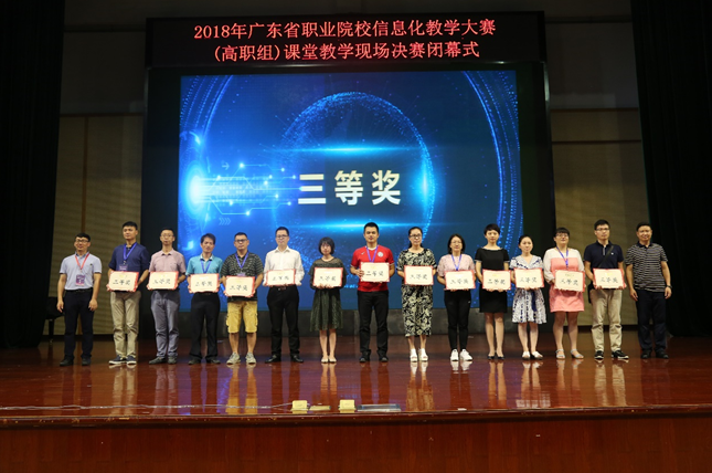 7月6-8日,由广东省教育厅主办,广东技术师范学院和广州女子职业技术学院承办的2018年广东省职业院校信息化课堂教学大赛(高职组),现场决赛在广州女子职业技术学院圆满落幕, 比赛获奖名单公示期自7月14日至7月20日,共7天。经过激烈的角逐,我校供热通风与空调工程技术专业教师团队黄进禄、郑劲松、吕崇花三位教师组成的团队的参赛作品《空调系统水管管径确定》,经济管理系教师江静、刘峻兵、土木工程系教师曾浩组成的团队的参赛作品《出口单价条款》分别荣获大赛三等奖。