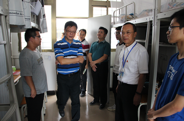 吴刚强一行先来到学院新建11-14栋宿舍,检查宿舍工程质量、内部设施。他走进一间学生宿舍与学生交谈,了解学生学习生活情况,勉励同学们要努力学习,将来做国家栋梁之材。之后,吴刚强步行环绕校道,先后来到化学工程系、土木工程系、机电信息系实训楼,在系部相关人员的介绍下参观了实训设施设备,详细了解了学院招生就业、专业设置和各种实训设备使用情况。
