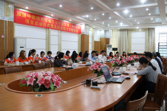 11月13日下午,我校与中山大学合作的中欧提升社会工作专业发展项目在我校顺利启动。副院长梁德萍,中山大学社会工作专业副教授雷杰、副研究员卢玮,深圳社工学院项目总监周燕琼,我校人文与传媒系主任梁辉良以及我市展翼、优正、爱家社工机构负责人和27名参与项目的16级社会工作专业学生出席了活动。梁辉良主持仪式。