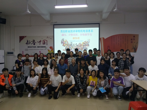 为帮助特殊群体学生尽快融入茂职院这个温暖的大家庭,更好地适应大学的学习生活,11月15日下午,机电系在党员活动中心分别召开了“弘扬军人精神,写就精彩茂职”退伍学生专题座谈会和2018级女生、少数民族、外省籍学生座谈会,系领导、辅导员及相关学生参加了座谈会。