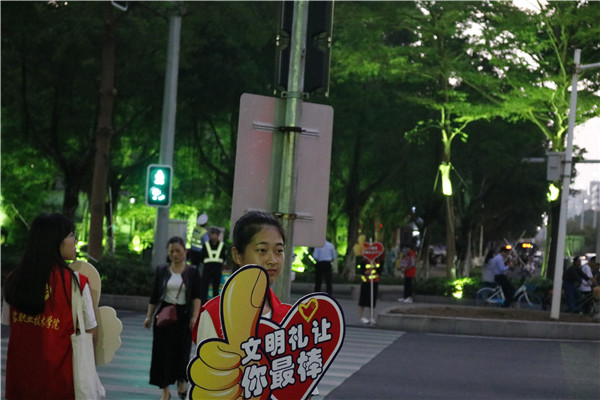 每个工作日下午五点整,学院各大学生组织和北校区团委志愿者分批统一穿着我院志愿者马甲,按时出发,经过20分钟步行到达了我院负责的三处交通文明岗,分别是文明北路与官山路十字路口,文明中路与油城七路十字路口,文明南路与迎宾三路十字路口。抵达后,志愿者们马不停蹄地开始了志愿行动,两两一对站到了斑马线的两侧开始维持交通秩序。在志愿服务期间,不时有行人想要闯红灯过马路,志愿者们都一一上前劝阻,耐心地向他们解释遵守交通规则的重要性。路过的人们纷纷对志愿者伸出大拇指为志愿者点赞。