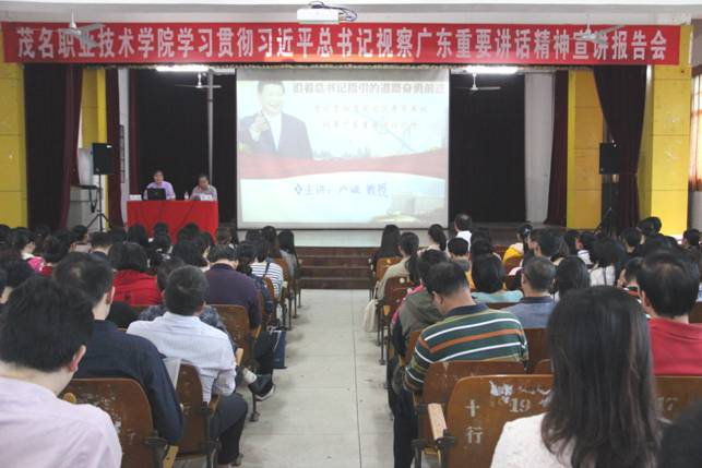 打造茂名十大文化名片,建设好心茂名”等九个方面提出深入学习贯彻落实重要讲话精神,卢教授精彩生动的报告赢得了师生的欢迎与热爱。