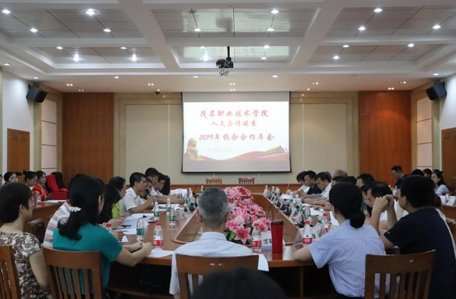 2019年5月30日下午,人文系在北校区图书馆一楼多功能会议室召开2019年校企合作年会。参会的有广东省城市社区建设研究会、龙健集团、茂名文化传媒集团、茂名市社会工作协会等15家企业的负责人以及人文与传媒系领导、师生代表、辅导员等出席了系部年会。会议由宋舒副主任主持。