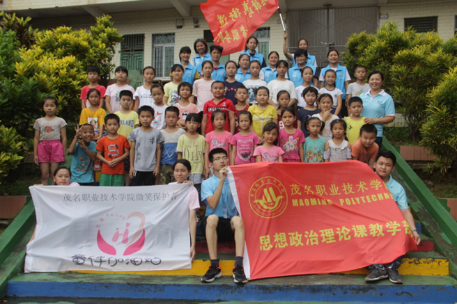 共筑中国梦”大学生暑期社会实践活动,7月9日至16日茂名职业技术学院花漾实践小分队“微笑保护者”服务队到学校定点帮扶单位----茂名信宜池洞村举办了“童伴加油站”关爱留守儿童公益夏令营活动。