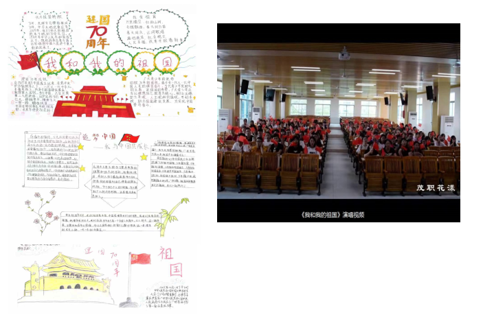 手抄报+祝福视频+合唱赞歌,茂职学子用自己朴实的方式来演绎一场心灵与伟大祖国的深情相拥。看,有同学用自己手中笔画出一幅幅手抄报;听,熟悉的赞歌《我和我的祖国》回响在教室;瞧,校园、操场、科技馆、校道……一个个同学饱含热情深情道出:我爱你祖国!