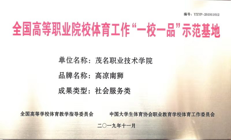 全国高等职业院校体育工作“一校一品”示范基地评选至今,已有三批次89个项目一举胜出,成为全国1359所高职院校争相学习的标志性项目。这次第三批评选历时7个月,共有23个项目获正式立项、4个项目入围培育项目,其中广东高校占据了立项项目的3席,总量增至8个。作为粤东西北唯一获此殊荣的高职院校,茂名职业技术学院将以此为契机,以社会主义先进文化为引领,充分发挥高校文化传承创新的优势与作用,用心打造广东省高校优秀传统文化传承基地,不断焕发“好心茂名、精彩茂职”的文化魅力,持续巩固“不忘初心、牢记使命”主题教育成效。