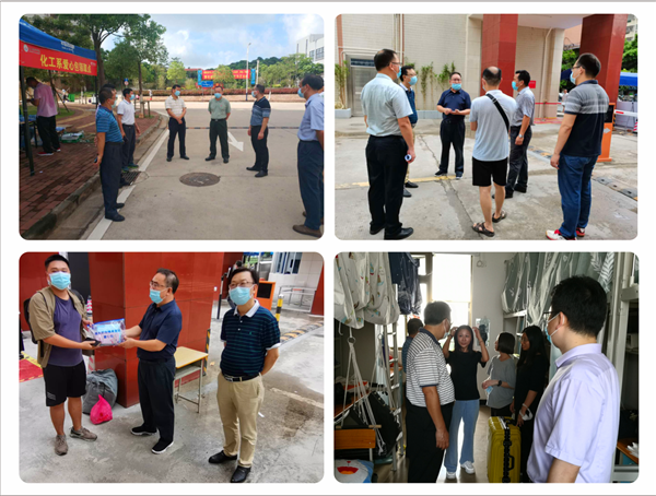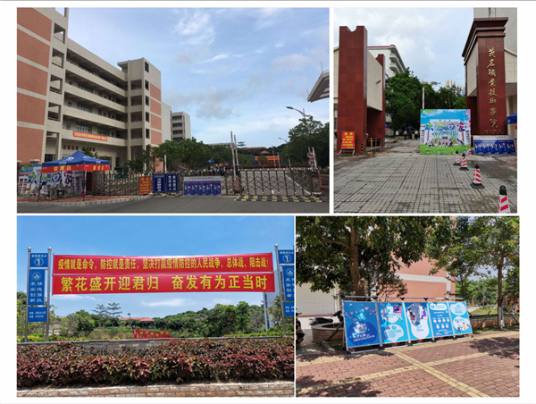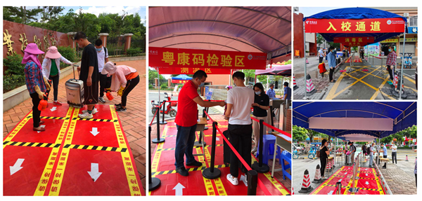 “欢迎回家”的大型欢迎牌,播放防疫宣传、欢迎学子归来的电子显示屏,颜色醒目的行进路线和指引标识,疫情防控宣传专栏、横幅……南北校区两个校园内处处显示出欢迎学子返校的温馨氛围。学校在校道主干道设立学生返校接待点,临时隔离观察点,爱心包发放点,学生们在经过身份核实、体温检测、扫粤康码、行李消毒、领取爱心包等环节有序入校,报到现场井然有序。
