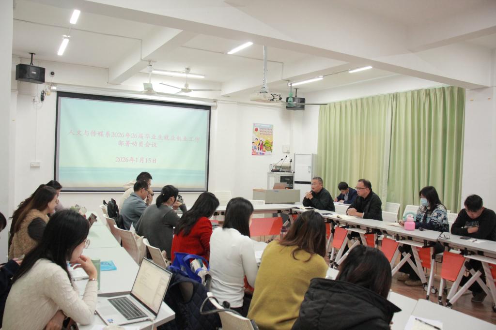1月15日,人文与传媒系组织召开2026届毕业生就业创业工作部署动员会议,全面启动2026毕业生就业创业指导与服务工作。系领导、岗位实习指导老师、学业导师、毕业班辅导员参加会议。