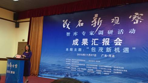 近日,首期“茂名新观察”智库专家调研活动成果汇报会在市迎宾馆隆重举行。来自省、市的十一位专家紧紧围绕包茂高速给茂名发展带来的新机遇,从经济发展、城市交通道路建设、旅游业、农产品销售等方面,专业、深刻、系统地提出了自己的真知灼见。我院经济管理系梁逸更老师受邀在会上作了题为《紧抓包茂开通机遇,发展茂名旅游经济》的汇报。“茂名新观察”智库专家调研活动由市社科联和《南方论刊》杂志社联合主办,活动通过组织智库专家围绕茂名经济社会发展遇到的一些难点和热点问题深入调研,展开“新观察”,为茂名发展的科学决策提供强有力的“智囊”支持。