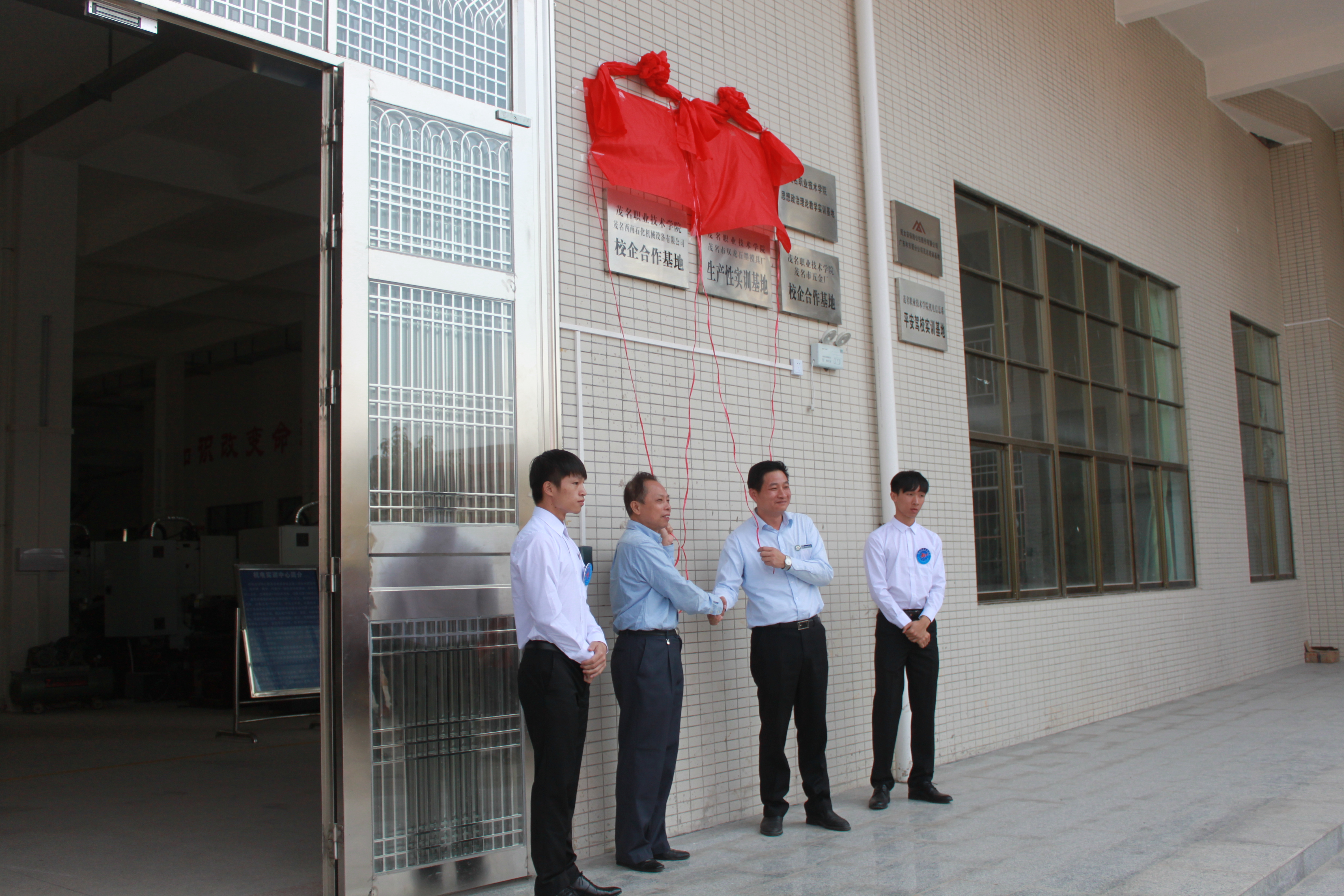 12月18日上午11时40分,水东湾新城校区崭新的机电大楼前彩旗飘扬、掌声阵阵,学院四大基地(中心)——国家汽车维修专项技能认证实训基地、茂名市自动化设备工程技术研究中心、蒂森电梯有限公司茂名职业技术学院校企合作电梯实训基地、富士康C次集团茂名职业技术学院自动化人才培养基地逐一揭牌。学院副院长谈毅、机电系主任贲少辉,茂名市科技局科长罗绍辉,全国汽车维修技能认证技术支持中心副主任兼中国汽车维修行业协会连锁经营工作委员会副秘书长楼新良,蒂森克虏伯电梯(中国)中山公司总经理梁万江出席了揭牌仪式并参加揭幕,为学院三十周年庆典献上了一份别具意义的礼物。