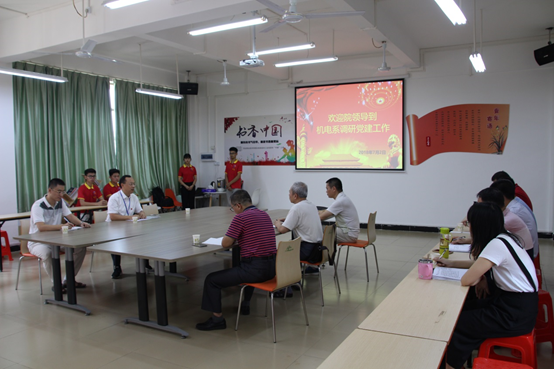 7月2日上午,学院党委书记高鹏到机电系调研,认真听取了系领导贲少辉、彭树福的工作汇报,主动征求党员教师们对学院党委工作的意见,充分肯定了机电系率先搬迁新校区以来所取得的可喜成绩,并为机电系的可持续发展提出了建设性意见。