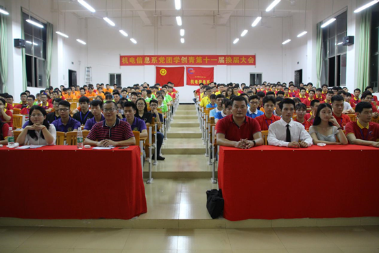 近日,机电信息系第十一届党团学创青换届大会在南校区教学楼1栋201隆重举行,出席本次大会的领导、老师有彭树福书记、15级辅导员周丽莎、16级辅导员张汉军、17级辅导员何铮、和党团学创青全体成员以及各大院系组织代表。