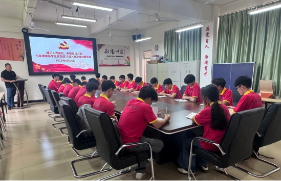 为推动学习贯彻习近平新时代中国特色社会主义思想主题教育走深走实,学思明悟党的二十届三中全会精神,进一步筑牢入党发展对象的理想信念根基,严把发展学生党员的“入口关”“质量关”,6月26日,机电信息系学生党支部在机电大楼党员活动中心举办2023级入党发展对象专题党课《端正入党动机,争取早日入党》。党课由学生党支部书记张汉军开讲,全体入党发展对象参加了。