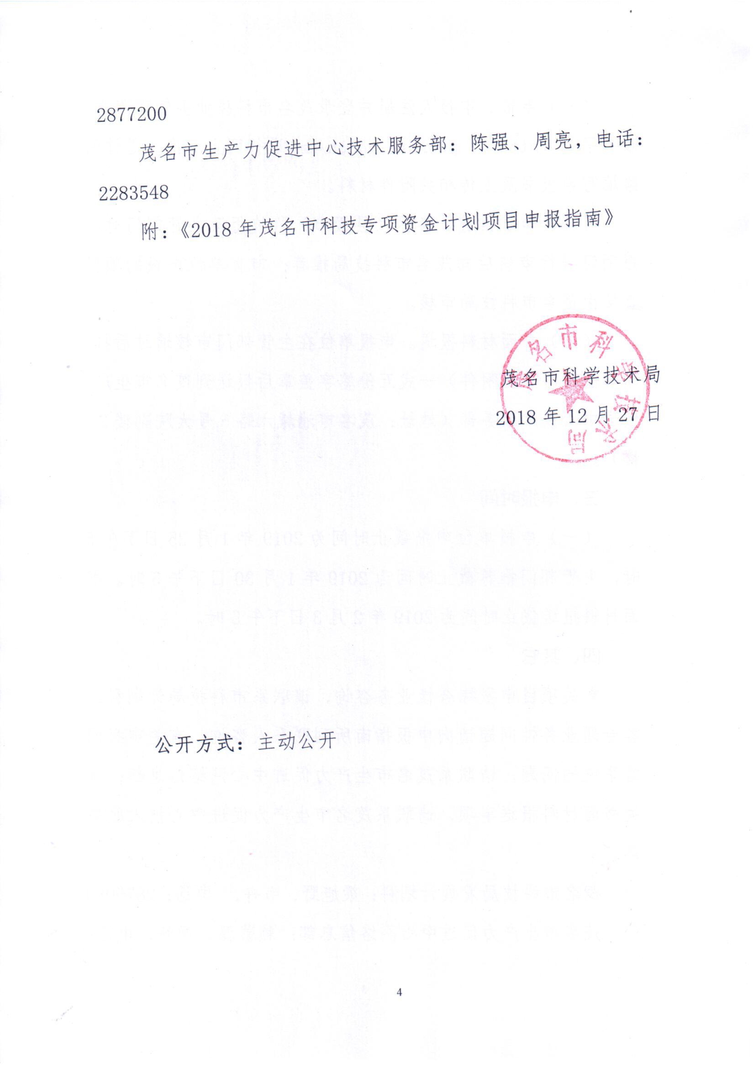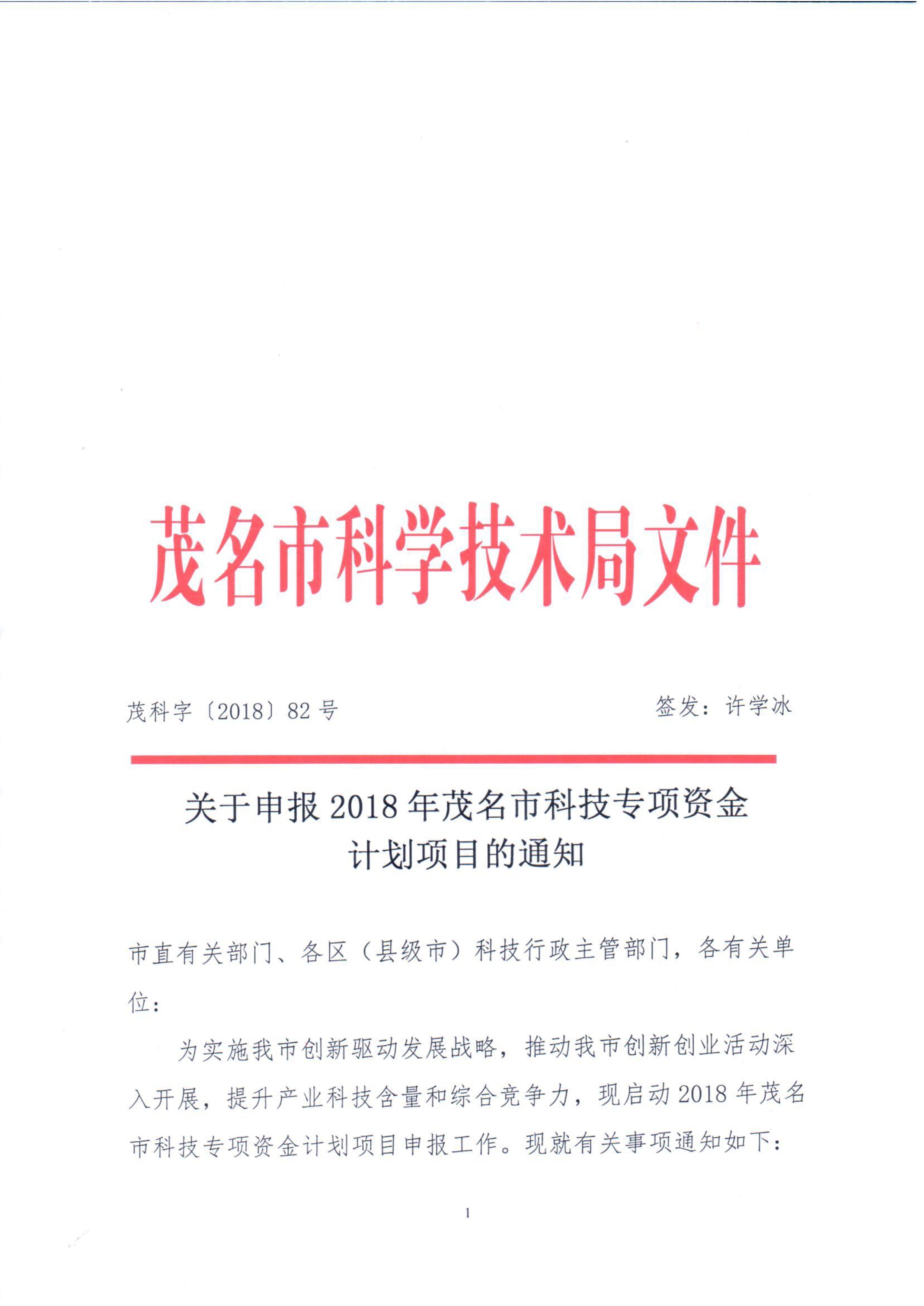 转发关于申报2018年茂名市科技专项资金计划项目的通知