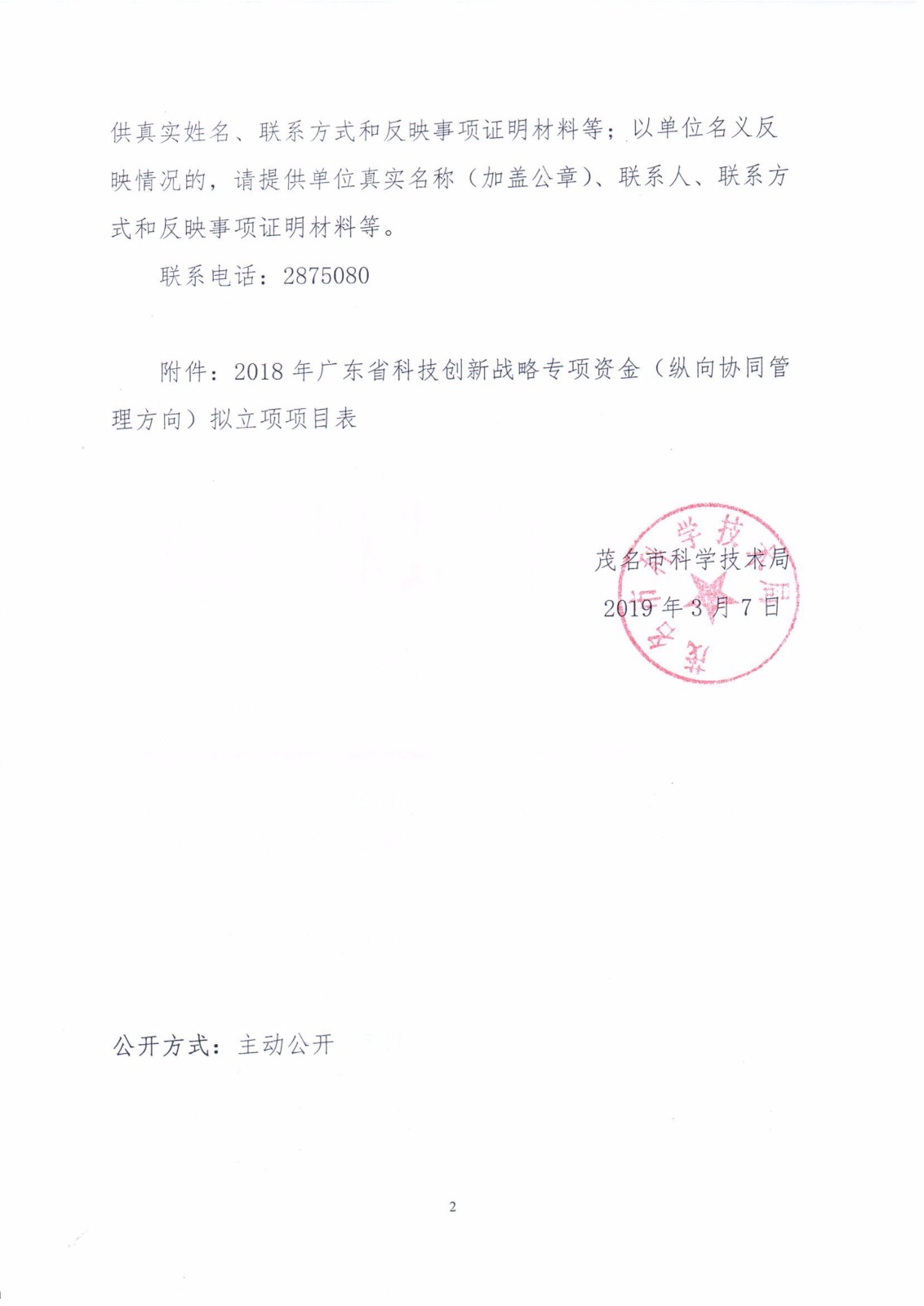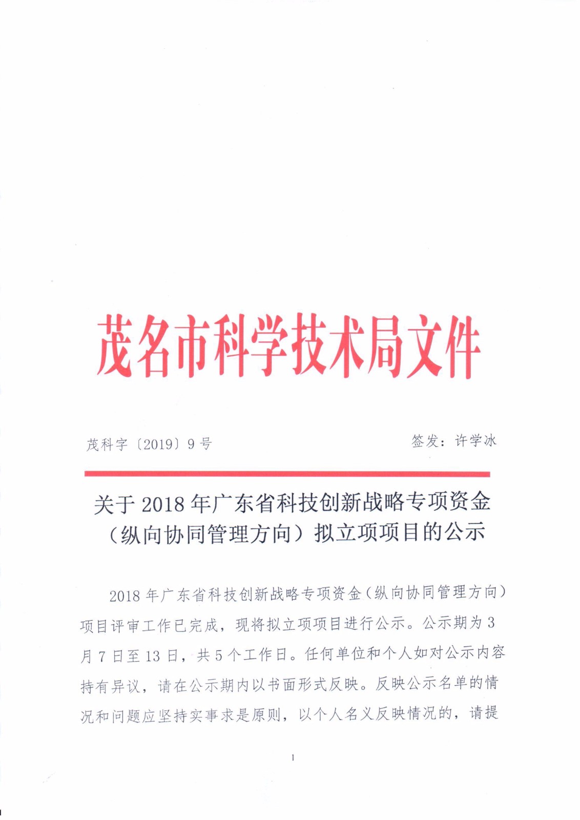 转发关于2018年广东省科技创新战略专项资金(纵向协同管理方向)拟立项项目的公示