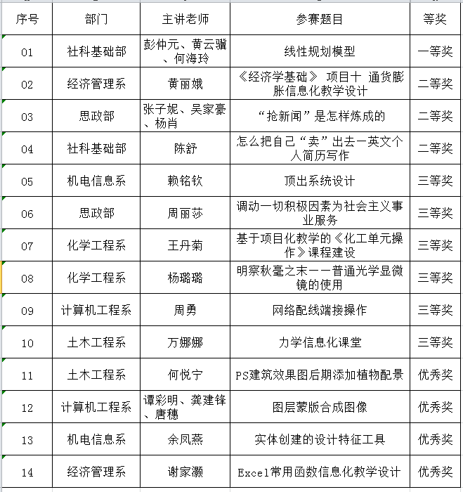 茂名职业技术学院2018-2019学年度教师教学竞赛评审结果于2019年4月24日首次公示(评审结果首次公示网址:http://www.mmvtc.cn/templet/xskyw/ShowArticle.jsp?id=49206),公示期间收到参赛老师对公示结果表示异议的反映,经核实及评审专家的意见,一致表示认可老师反馈的异议,并根据异议重新统计有异议的赛项评分,现对评审结果给予重新公示。公示时间从2019年4月30日至2019年5月7日止。在此期间,若对评审结果有异议,请电话或书面向学院教务处或学院纪检监察部门反映。如果是书面反映要签署真实姓名,要有具体事实,以便联系与核查。