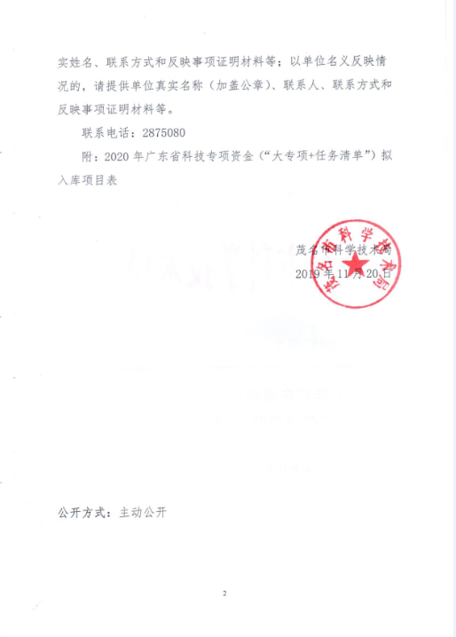 转发2020年广东省科技专项资金(“大专项+任务清单”)拟入库项目的公示