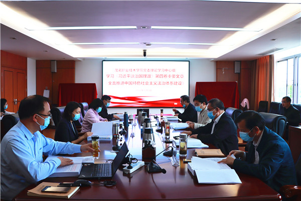 12月1日上午,我校党委理论学习中心组在北校区综合楼三楼第一会议室召开会议,专题学习《习近平谈治国理政》第四卷重要文章《全面推进中国特色社会主义法治体系建设》。党委书记扶国主持会议并讲话,党委委员、副院长谈毅作交流发言。党委理论学习中心组成员,党委办、学院办、工会、纪监审室、马克思主义学院负责人参加了会议。