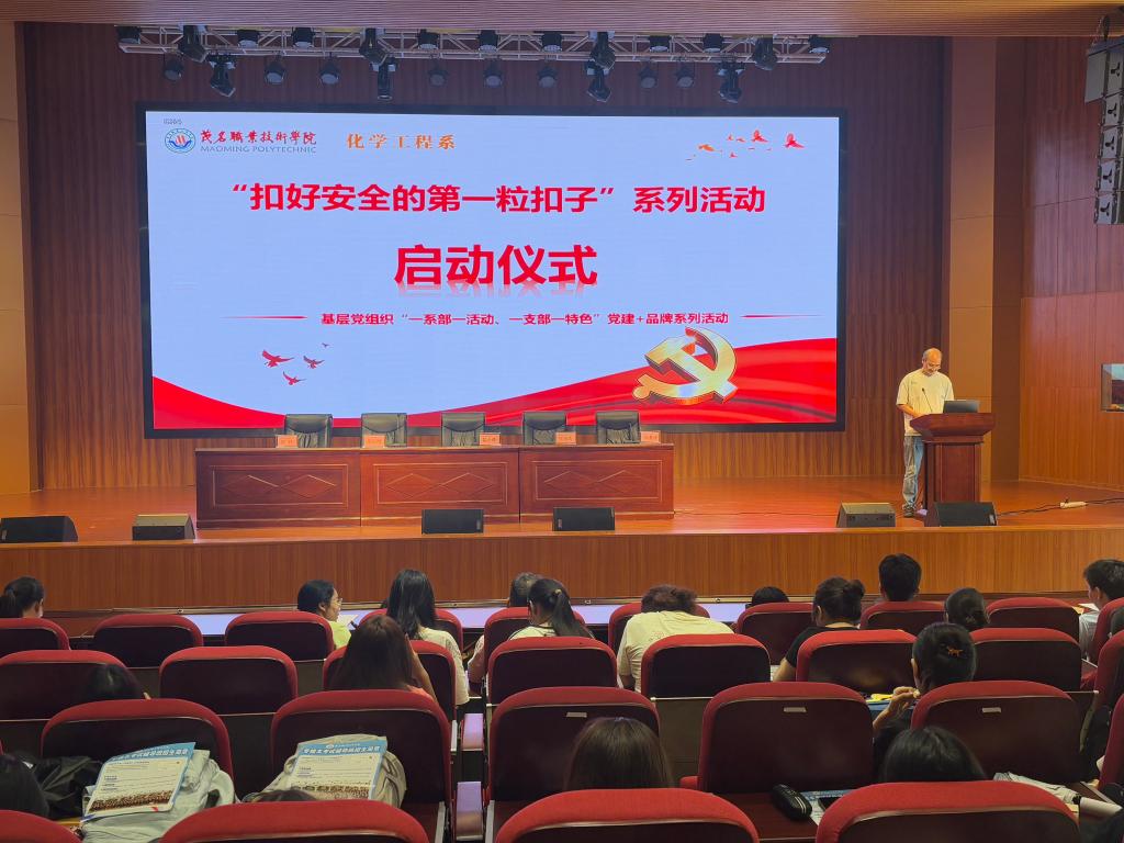 会上同步启动了化学工程系“一系部一活动、一支部一特色”党建+品牌创建活动之“扣好安全的第一粒扣子”系列活动安全教育项目。