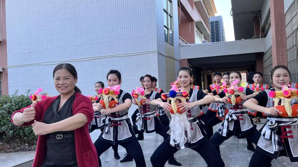 其中,表演类非遗获奖作品《跳花棚》由基础课部吴群莲老师编排指导,王楷深等24名学生倾情演绎。作品立足地方非遗文化资源,深入挖掘“化州跳花棚”的艺术内涵与民俗价值,通过富有感染力的舞台表现,生动呈现了这一传统舞蹈的独特魅力,也传递出青年学子对本土文化的认同与热爱。教学研究类获奖作品《非遗活态传承视域下“化州跳花棚”活化融入高职学校美育教育的创新路径研究》由基础课部何海玲老师撰写。论文立足高职院校人才培养特点,聚焦非遗资源如何有效转化为美育教学内容,探索出一条具有操作性、创新性的育人路径,体现了我校教师在非遗教学研究领域的深度思考。两项作品在全省众多参评项目中脱颖而出,既是对我校师生专业素养与创新能力的肯定,也是学校坚持“五育并举”、推动非遗扎根校园的有力印证。