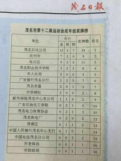 12月18日,茂名市第十二届运动会在茂名体育馆圆满闭幕。我院体育代表团在这届运动会中夺取了三枚金牌、两枚银牌、三枚铜牌的优异成绩,并荣获了竞技成年组团体总分第四名、竞技成年组金牌总数第四名、体育道德风尚奖等三个大奖,喜获运动成绩和精神文明双丰收。