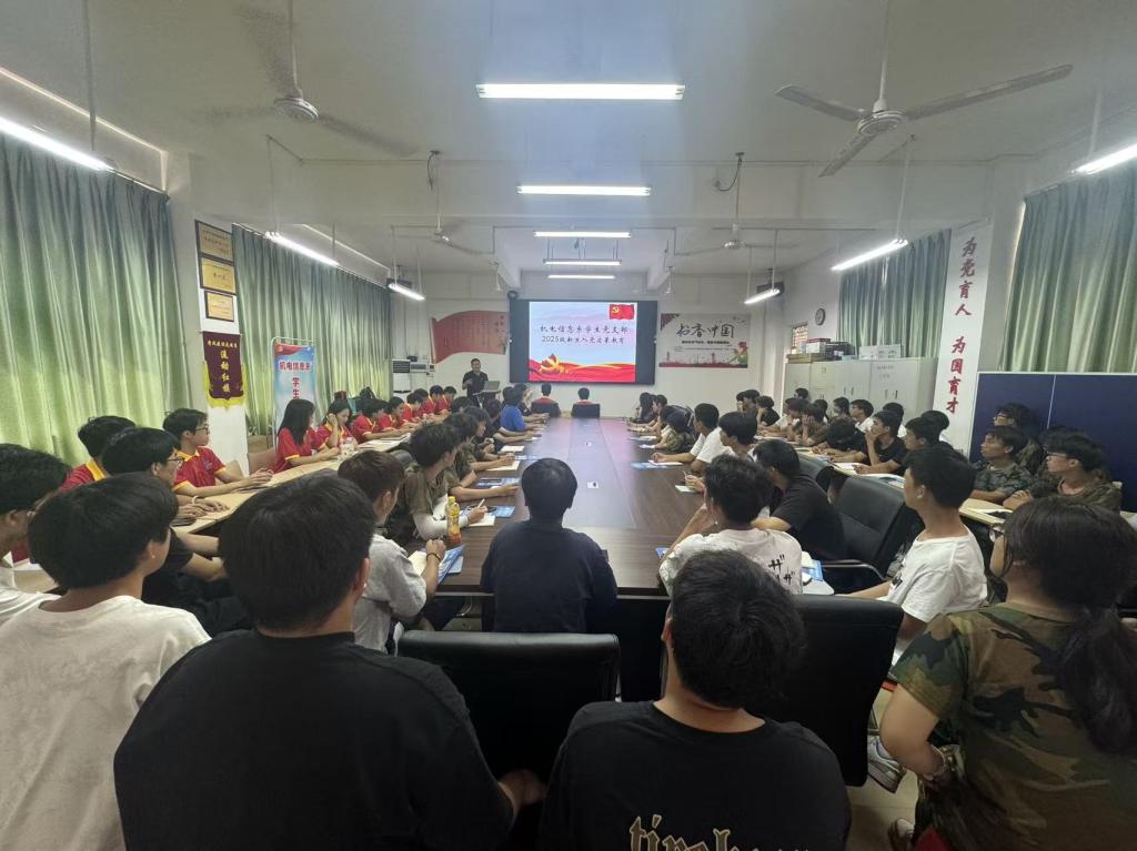 为深入贯彻习近平新时代中国特色社会主义思想,加强对新生的思想引领,引导新生积极向党组织靠拢,10月16日中午,机电系学生党支部在7号楼党员活动室召开2025级新生入党启蒙教育大会。本次大会由学生党支部书记张汉军主讲,学生党建中心全体成员和2025级各班班长、团支书参加。