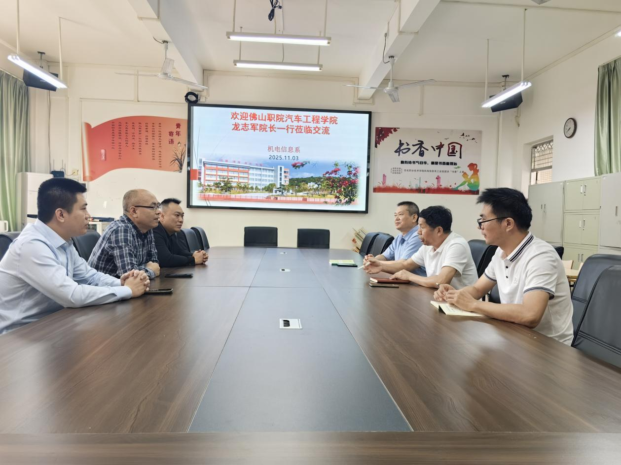座谈会上,王开简要介绍了我校的办学历史、发展定位及整体办学特色。重点围绕机电信息系在汽车类专业建设、师资队伍结构优化、教学资源整合等方面的实践经验与成效进行了详细阐述。龙志军则分享了佛山职业技术学院汽车工程学院在专业群建设、“双师型”教师培养、产教融合项目推进等方面的创新举措与发展成果,为双方互学互鉴提供了宝贵参考。双方还围绕汽车类专业核心课程体系构建、师资队伍协同培养、实训基地标准化建设、校企协同育人模式创新等核心议题展开深入交流与研讨。