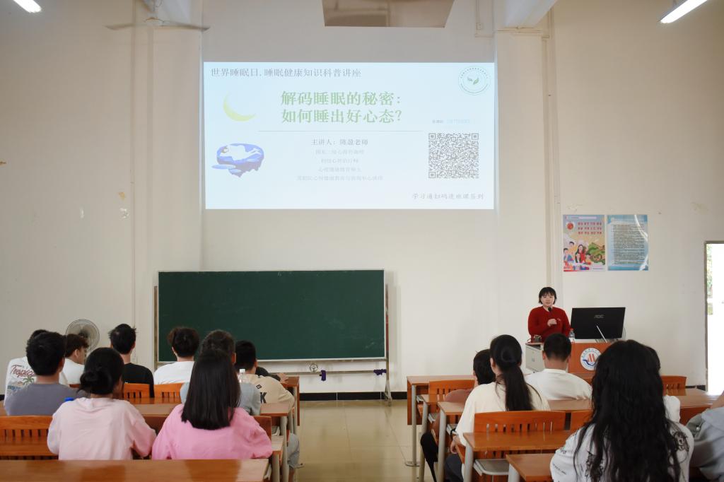 为帮助我校广大学生科学认识睡眠,提升心理健康素养,营造积极健康的社区文化氛围,3月19日下午,由我校学生工作部心理健康教育与咨询中心主办的“解密睡眠密码:如何睡出好心态”睡眠健康知识科普讲座,在南校区1号教学楼201教室顺利举行,由心理健康教育与咨询中心专职教师陈盈主讲。
