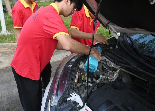活动中,入党积极分子们充分发扬精益求精的“工匠精神”,将平日里在实训课堂上学到的理论知识转化为实际服务。他们不仅对每一辆送洗的车辆进行了外观的深度清洁,还利用专业设备对轮胎气压进行了精确检测与补充,并逐一为车辆加注玻璃水,同时对车辆的基础状况进行了简单检查。
