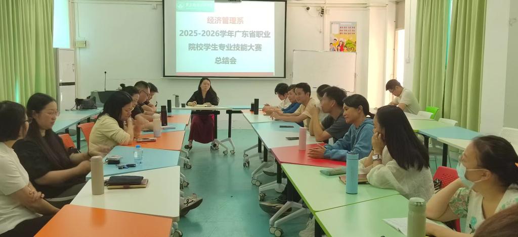近日,经管系在1号教学楼401会议室召开2025-2026学年广东省职业院校学生专业技能大赛总结会,系副主任赵丽金主持会议,各赛项指导教师、专业负责人参会。