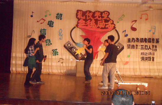 为践行“知识+技能+特长”的办学理念,提高大学生综合素质,丰富校园文化生活,4月19日晚,机电系在学院小礼堂隆重举行第六届礼仪先生大赛,机电系领导彭树福、各年级辅导员、班主任以及兄弟系邀请代表500多人出席了这次美丽盛会。