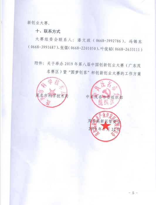 转发关于举办2019年第八届中国创新创业大赛(广东茂名赛区)暨“圆梦创客”杯创新创业大赛的通知