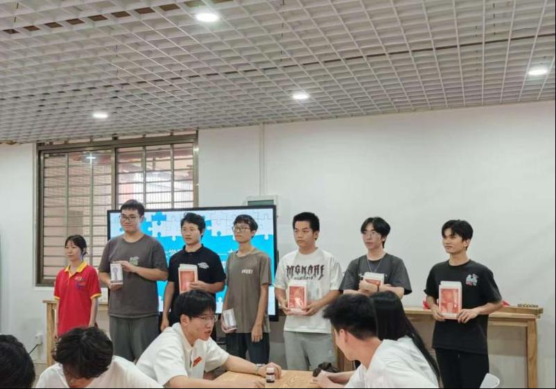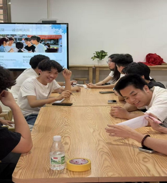 盲盒题库涵盖思政知识、心理健康、防诈常识与专业技能四类内容。各组轮流抽取并限时作答,答错需在十秒内通过自主查阅或团队讨论得出正确答案。此环节变被动接受为主动求知,充分体现了自我教育的精神。
